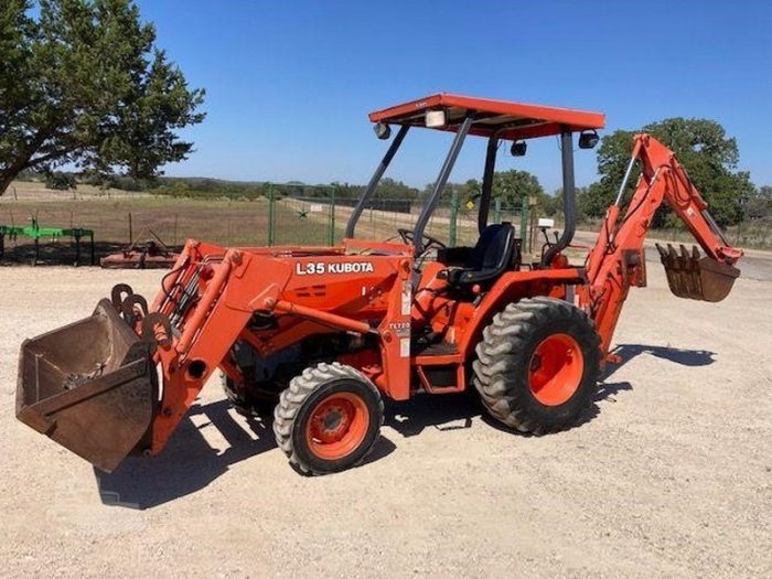 2000 Kubota L35 with TL720 loader and BT900 backhoe. 35hp. MFWD. Glide shift transmission w/8-forward and 8-reverese speeds. Digging depth for loader is 9′. Comes with 3pt arms. R-4 tires in good condition. Fiels tested.