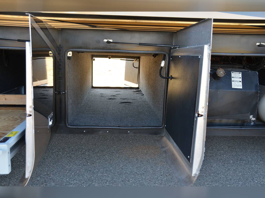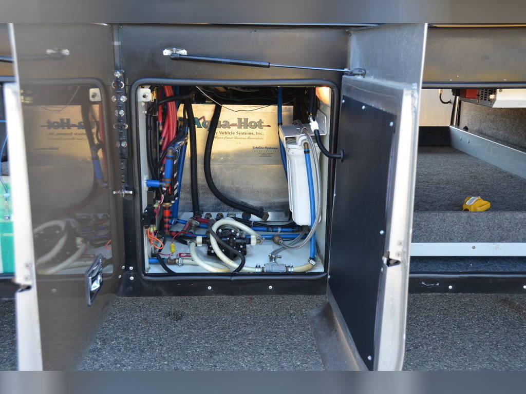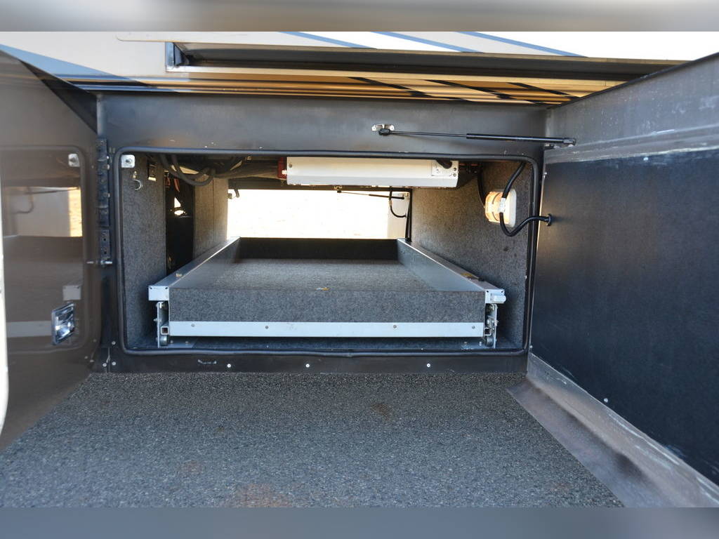 Fresh water capacity 100 gal Heated bay for tanks Side-hinged bay doors Girard Powered Window Awnings Entry Door Air Seal Heated & Remote Exterior Mirrors 1 Piece Panoramic Windshield Dock lights (4) Tinted Windows Manifold plumbing system Dual fuel fills Generator On Power Slide RS Bed Room Bed Slide 10′ X 18″ 2 Cargo Trays Exterior Height 12′ 1″ L.P. Capacity 38 Gal. Girard Auto Patio Awning