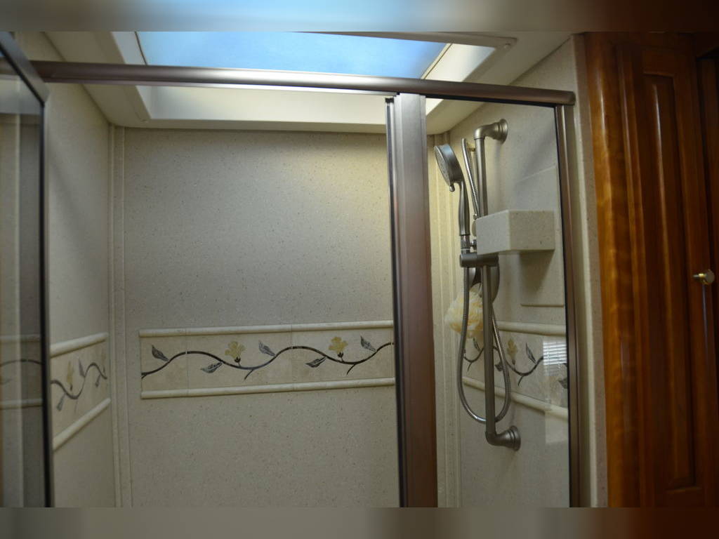 Corian thru-out Corian shower walls 2 Bath Lavatories Polished Ceramic Tile At Entry, Kitchen and Bath RS Computer Desk And Leather Euro Recliner Powered Windshield Shade 6-Way Power Pilot and Co-Pilot Seats with Electric Lumbar; Electric Sliding Seat Cushion and Memory Capabilities on Pilot Seat; Power Footrest on Co-Pilot Seat