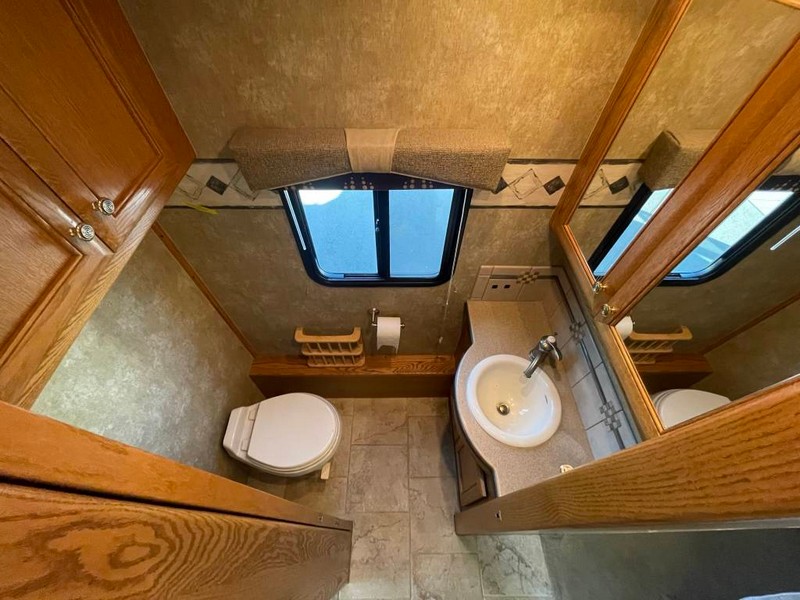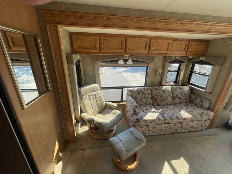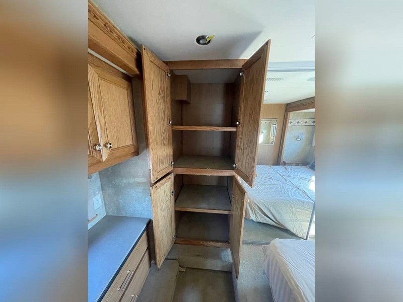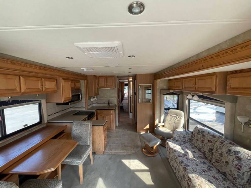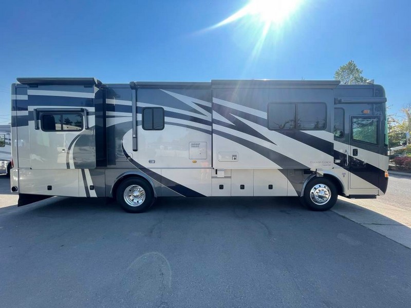 Did not make many 34 footers.Custom built Dynomax chassis.Independent front suspension gives the ability to maneuver tight spots. four slide rooms give lots of interior room to stretch out.