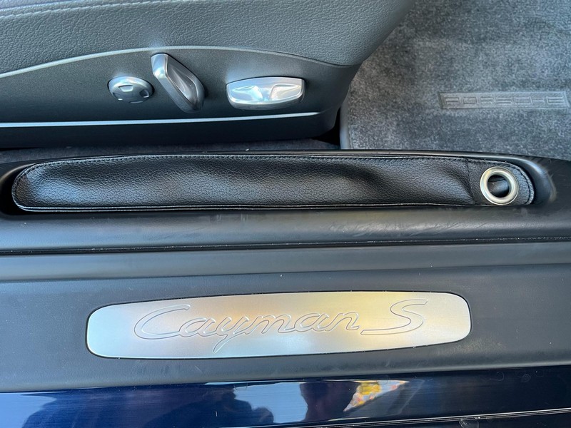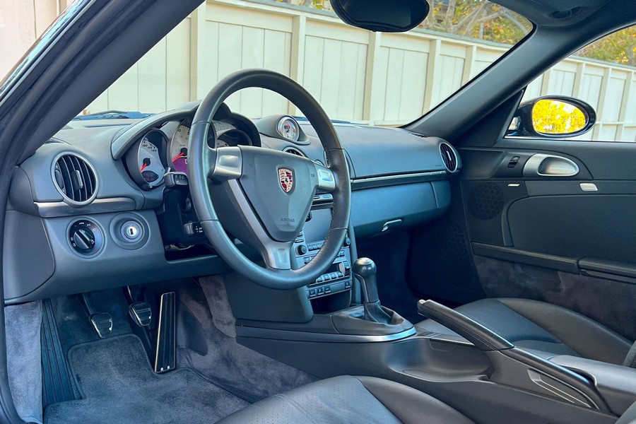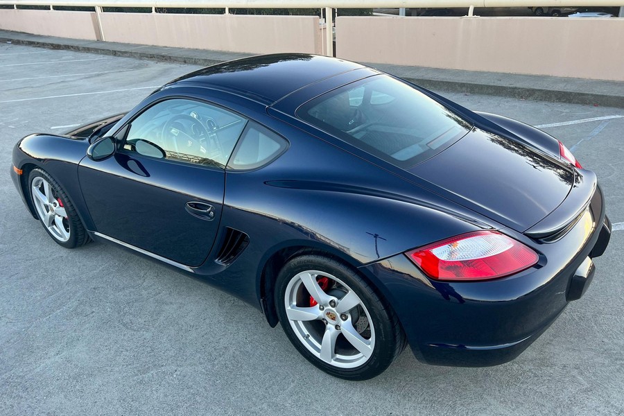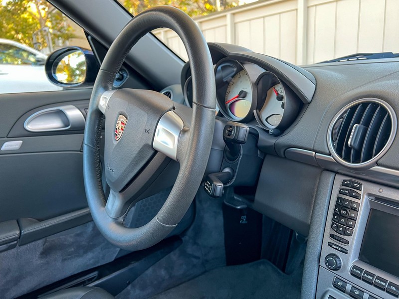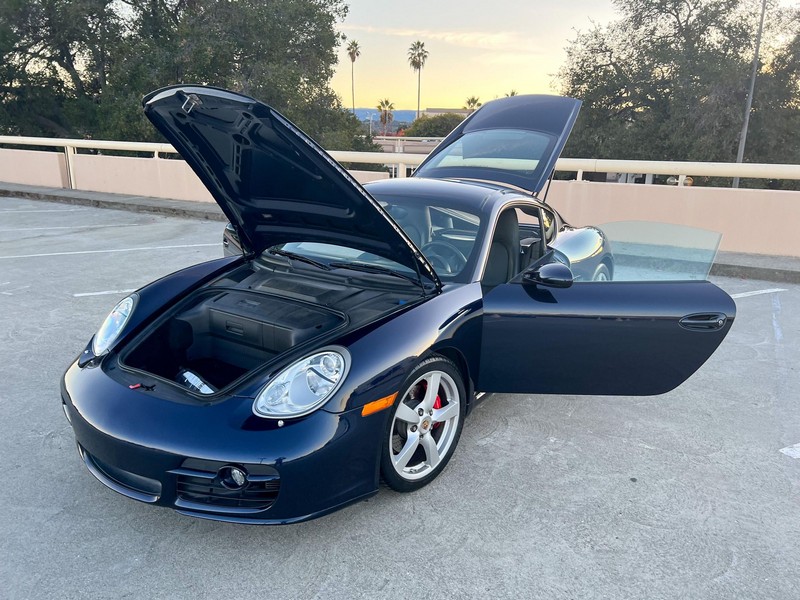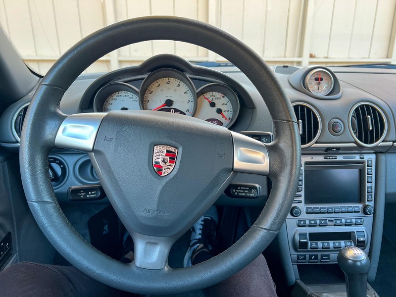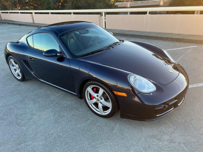 THIS… is a 2007 Porsche Cayman S, finished in Midnight Blue Metallic with a Stone Gray interior. This Cayman is equipped with the desirable 6-speed manual transmission. The attached Carfax history report shows no accidents or mileage discrepancies in this Cayman’s past. It also confirms that it’s been registered in California since new. According to the window sticker provided in the gallery, factory equipment includes the Preferred Package Plus, the Sport Chrono Package Plus, PASM suspension, 18-inch Cayman S wheels, bi-xenon headlights, leather upholstery, power-adjustable heated front seats, a PCM infotainment system, a Bose High End sound system, and more as detailed below. Modifications reported by the seller are limited to a Dream 1 exhaust and a Dension interface for the sound system. Power comes from a 3.4-liter flat-6 engine, rated at 295 horsepower and 251 lb-ft of torque. Output is sent to the rear wheels via a 6-speed manual transmission.