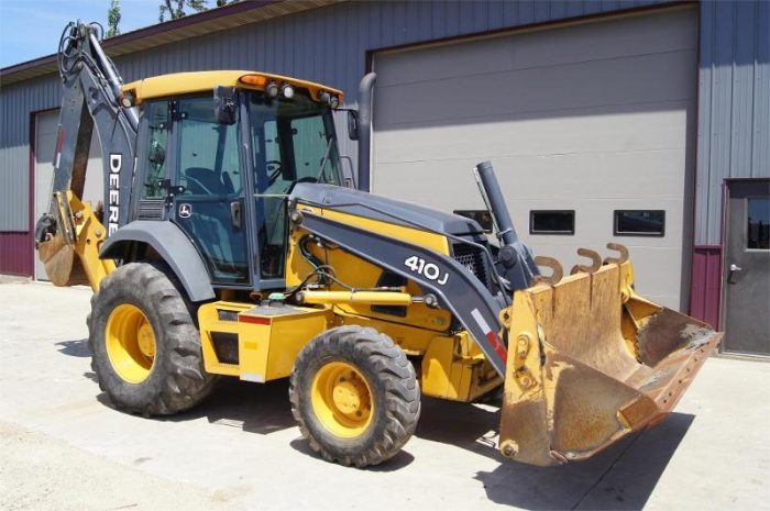 2011 DEERE 410J, 1672 HOURS, 4IN1 BUCKET. CAB WITH HEAT AND A/C. RIDE CONTROL. PILOT CONTROLS. STEREO. AIR RIDE SEAT. EXTENDA-HOE. 24 INCH BACKHOE BUCKET