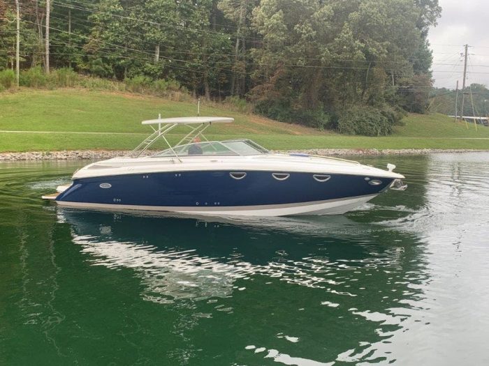 This 323 is loaded with all options available. It is powered by Twin 8.1 Volvo Duo Prop with Joystick Docking Control with about 335 hours. The Kohler generator only has 5 hours.. Options include: Air Conditioning/Heat; Cabin TV/DVD; Captain’s Call Exhaust; Docking Lights; Fender Clips (4); Auto Fire Suppression System; US Flag &SS Mast; Flip Down Swim Step with Ladder; 5kw Generator; GPS Plotter; Premium Sound System with Transom Speakers & Remote; Remote Spotlight; Stainless Steel Arch w/Hardtop; Stainless Steel Foot Tread at Helm; Swim Platform Transom Lighting; Transom Shower; Underwater Lighting; Vacuflush Head System w/Macerator; VHF Radio; Windlass with Line, Chain and Anchor.