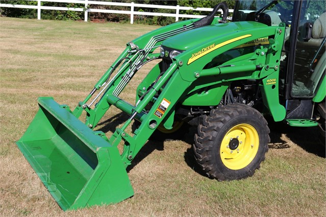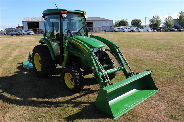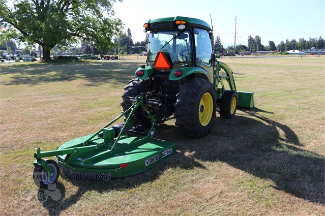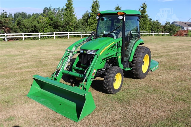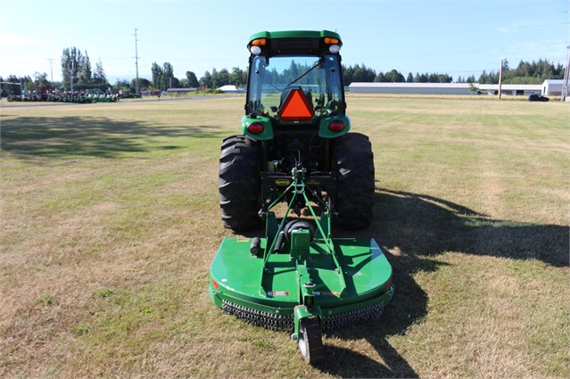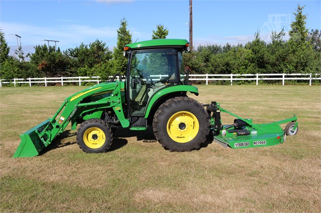 This is a stunning low how 4720 cab compact tractor. Deluxe cab, air suspension seat, defrost and ac, factory installed radio, auto throttle, 400X loader, quick hitch and it comes with an RC2060 rotary cutter.
