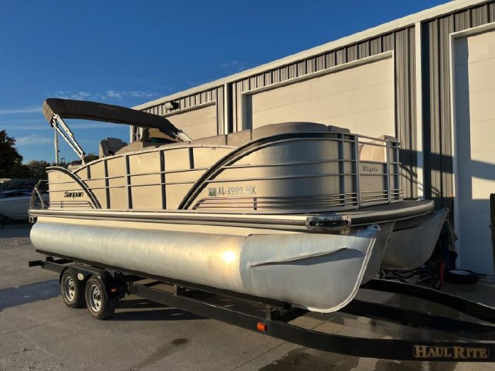 !!! Only 127 Hours !!! This is a fully loaded top of the line 24’ Tri Toon equipped with a 150 hp Yamaha four stroke outboard, hydraulic steering, seat covers, removable carpet/vinyl floor, Carpet is not stained but has some spots where it was wet from the water in the pics, elevated helm, AM/FM stereo, Bimini Top, and more.