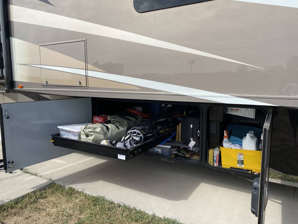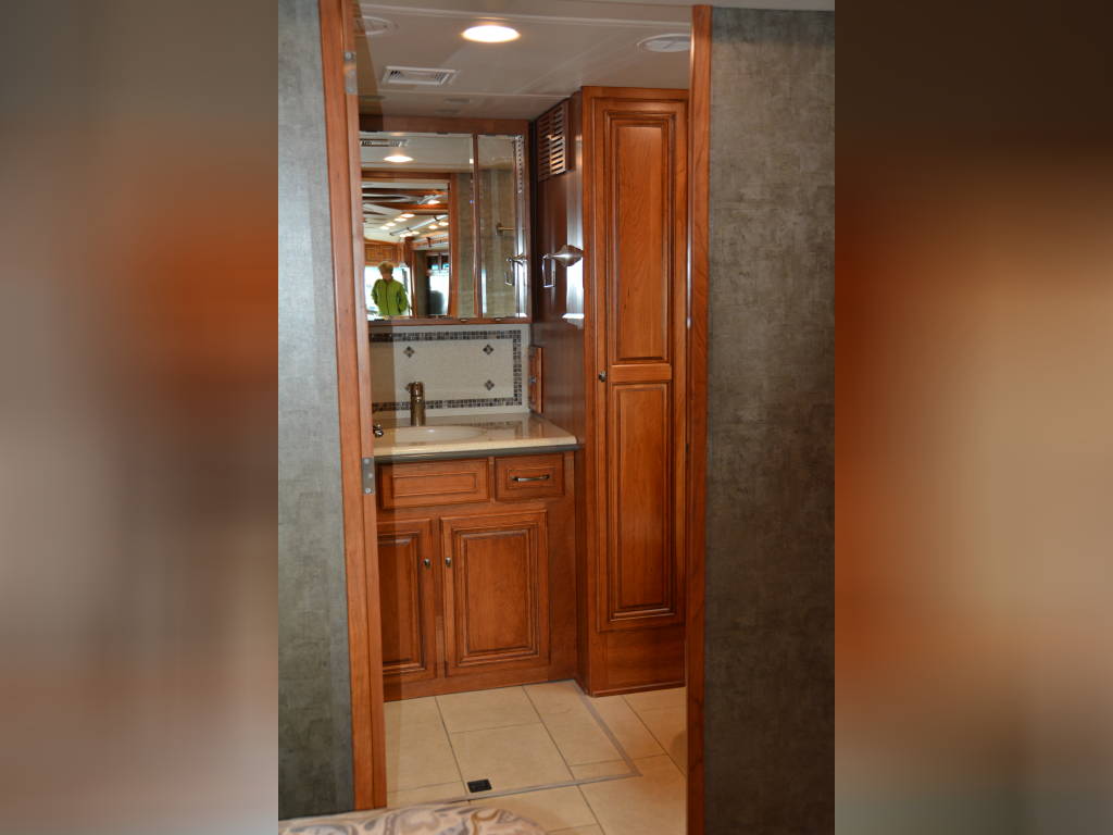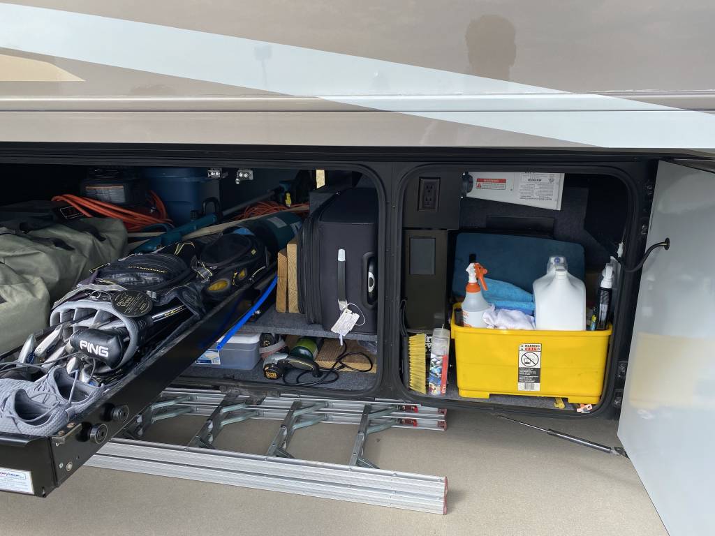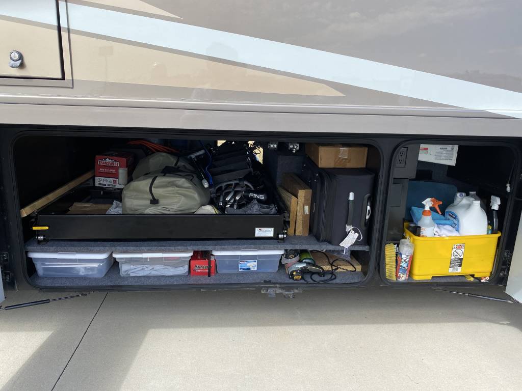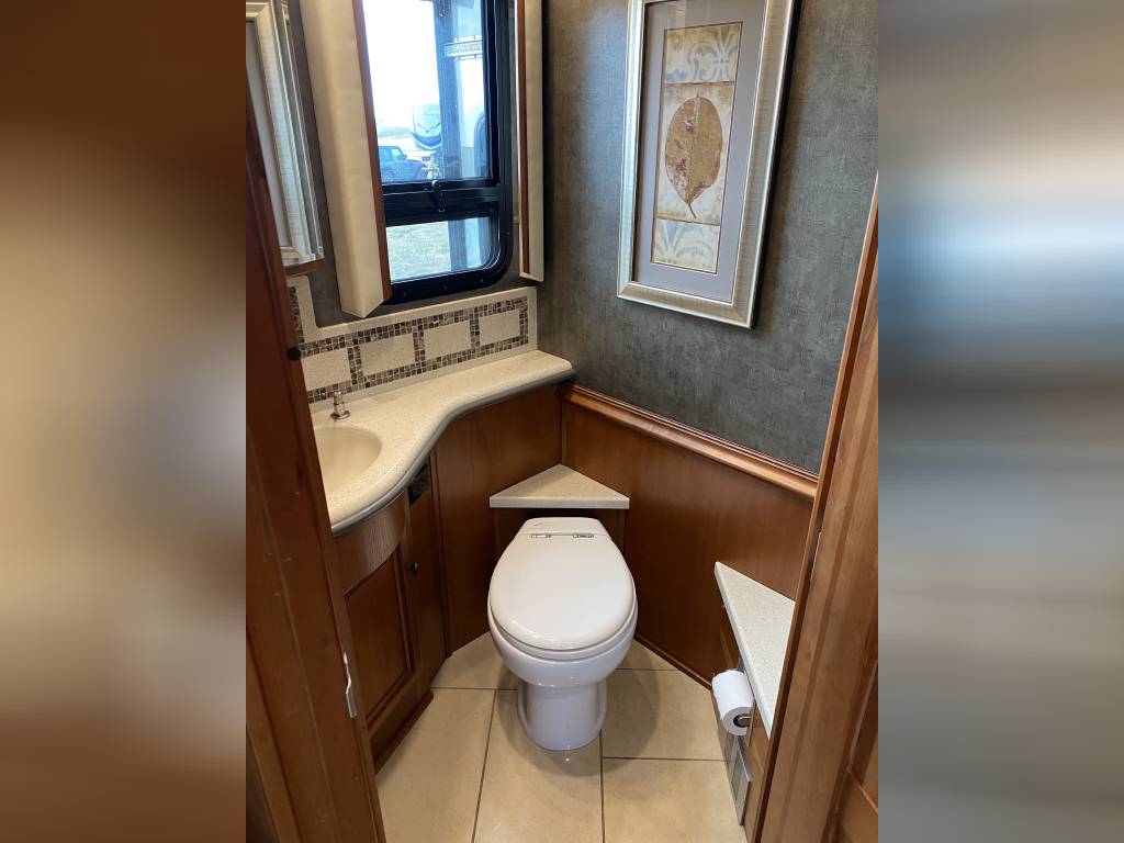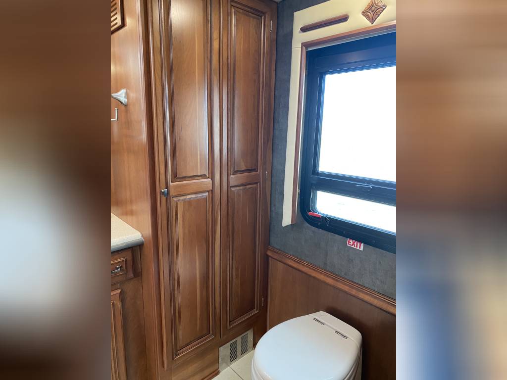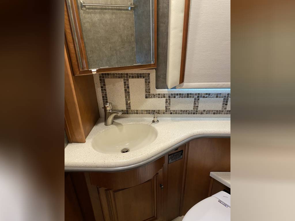 Discover like-new Class A Diesel 2014 Winnebago Tour 42QD. Immaculate condition inside and out. No pets, no smoking, no shoes (compulsively clean owners…)! Dedicated to annual maintenance per mfg. schedules with all service records available. There are many upgrades/optional features to this stunning coach, which include: coach and chassis batteries replaced (2020), tailgate package (with electric range top, refrigerator and storage compartment), Winegard SWM HD satellite TV system, slide covers replaced (2019), upgraded galley slide to more reliable power gear system (2018), upgraded kitchen faucet (2019) and showerhead (2021), front tires replaced (2018), stackable washer/dryer, tire covers for all tires. Inside, the Tour 42QD is all electric and has a highly desirable floor plan with a bath and a half. Standard features include Flexsteel captain’s chairs, recliner and J couch, porcelain tile on diagonal, solid surface Corian countertops with ornate mosaic stone/glass backsplash in kitchen and both bathrooms, cabinets, drawers and wood trim are stunning solid cherry. The coach features a full wall slide (driver’s side) and two slides on the passenger side, with a residential refrigerator/freezer with door water and ice dispenser, two televisions, microwave/convection oven, two-burner induction cooktop, drawer dishwasher, electric fireplace, 2 ottomans, and king-sized bed with air mattress. Has Aqua Hot 450D hydronic heating system for unlimited hot water. Outside, the Tour provides a double wide slide out bay, television on a swivel, three 13,500 BTU roof Coleman air conditions (two of which are heat pumps), an Onan 10kw diesel generator (less than 150 hours).