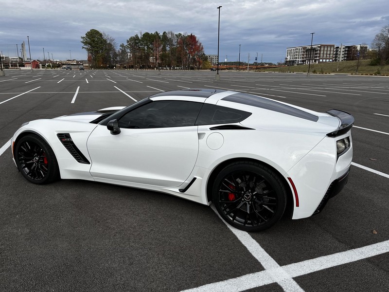 THIS… is a 2015 Chevrolet Corvette Z06 Coupe, finished in Arctic White with a Jet Black interior. This Corvette is equipped with the desirable 7-speed manual transmission. The attached Carfax history report lists no accidents or mileage discrepancies in this Z06’s past,and a partial list of notable equipment includes the 3LZ Premium Equipment Package, Z06 Performance Package, the Carbon Fiber Interior Package, 19-inch front and 20-inch rear Black Aluminum Z06 wheels, Carbon Flash hood stripe, outside mirrors, and spoiler, and a removable carbon fiber roof panel.