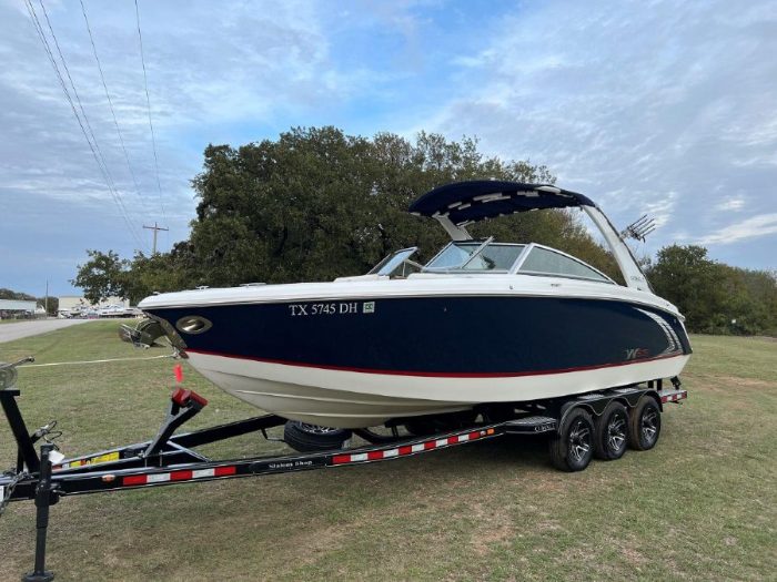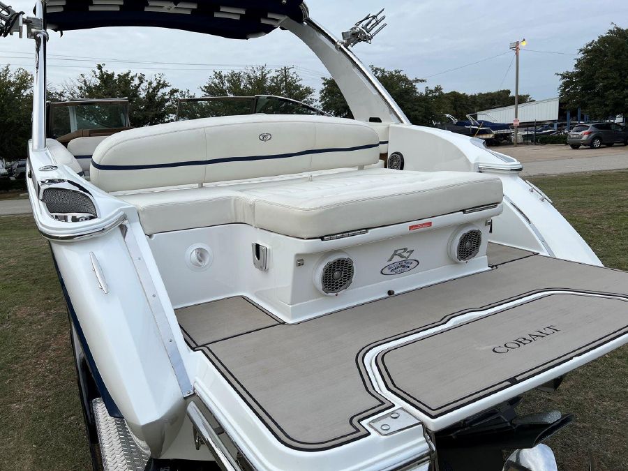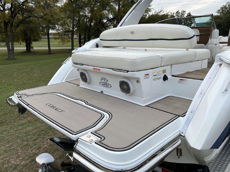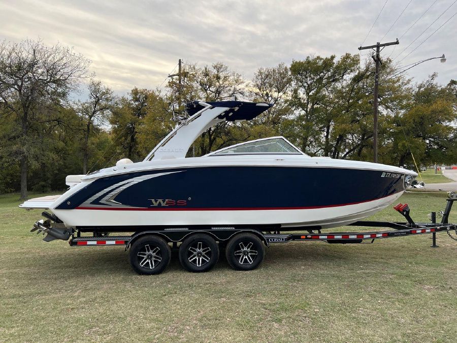 2015 Cobalt R7WSS. Trailer is included. This is a clean boat with great list of upgrades and it was the actual boat used in the 2015 Model photo shoot! Navy Blue w/ Red Stripe, Fuel Injected Volvo V8-380HP EVC Engine w/ Dual Prop, 304 Hours, Fixed Arch w/ Bimini Top, Trim Tabs with AutoGlide System, Garmin GPS. Pump Out Porta Potti, Swivel Board Racks, Snap-out Carpet, Extended Swim Platform w/ Flip Step, SeaDek on Platform, Docking Lights, Mooring Cover, Cockpit Table, Depth Finder, Tilt Steering Wheel, Upgraded Del Mar Sport Captain’s Chair w/ Bolster, Premium Sound System w/ Transom Speakers, Sub, & Amp, Swim Platform Lighting (above water), Fender Clips, Air Compressor, Dual Batteries w/ Switch. Excellent Condition. One Owner Freshwater Only Boat!