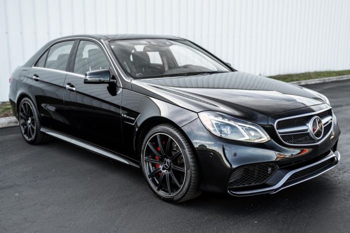THIS… is a 2015 Mercedes-Benz E63 S AMG Sedan, finished in Obsidian Black with a black interior. The attached Carfax history report indicates no accidents or mileage discrepancies.Equipment includes the AMG Styling Package, 19-inch wheels, a limited-slip differential, LED headlights, panoramic sunroof, power-adjustable heated and ventilated front seats, AMG Performance steering wheel, Distronic Plus adaptive cruise control, a Harman/Kardon Logic7 Surround Sound system, and more as detailed below. The selling dealer reports no modifications. Power comes from an “M157” twin-turbocharged 5.5-liter V8, rated at 577 horsepower and 590 lb-ft of torque. Output is sent to all four wheels through a 7-speed automatic transmission and Mercedes-Benz’s 4Matic permanent all-wheel drive system.
