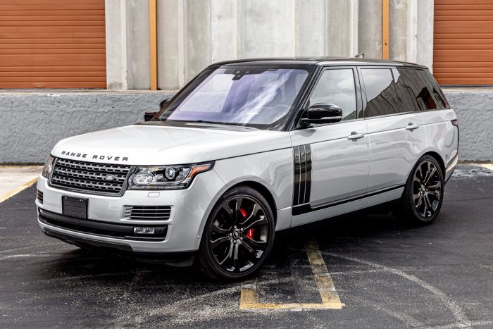 2017 LAND ROVER RANGE ROVER SVAUTOBIOGRAPHY DYNAMIC. SVO PAINT. ONLY 24,164 MILES. CLEAN CARFAX / AUTOCHECK. Introducing this 2017 SVAutobiography in SVO Premium Palette Silver with a black contrast roof, enhancing road presence and appeal. This SVAuto is perfectly specced, with SVO paint, upgraded 22″ wheels, full panoramic roof, and more. Don’t miss out on owning this properly optioned SVAutobiography in immaculate condition. FACTORY OPTIONS INCLUDE: SVO PREMIUM PALETTE SILVER – VERBIER SILVER. SVO PAINT $4,000. 22″ 5-SPLIT-SPOKE WHEELS STYLE 514 . BLACK CONTRAST ROOF. FULL PANORAMIC ROOF. LEATHER HEADLINER. MERIDIAN SOUND SYSTEM. HEATED WINDSHIELD DELETE. WHEEL LOCK PACKAGE – . LAND ROVER CAR CARE VALET PACKAGE.