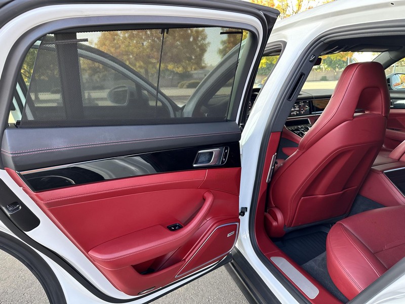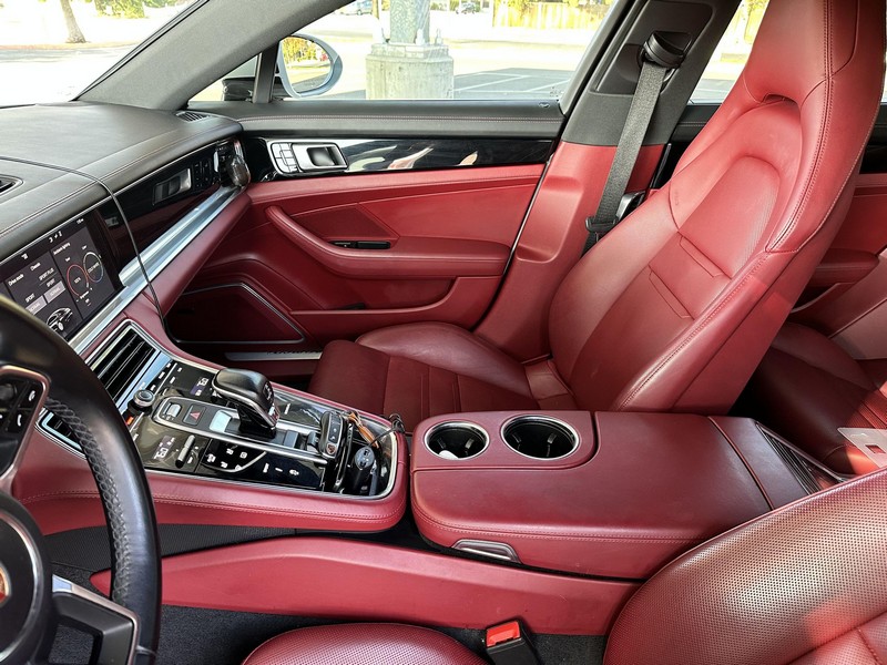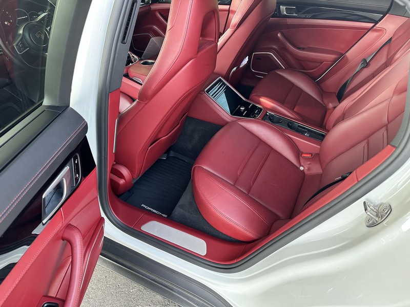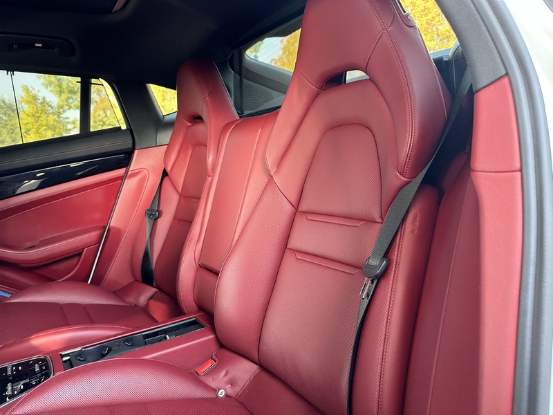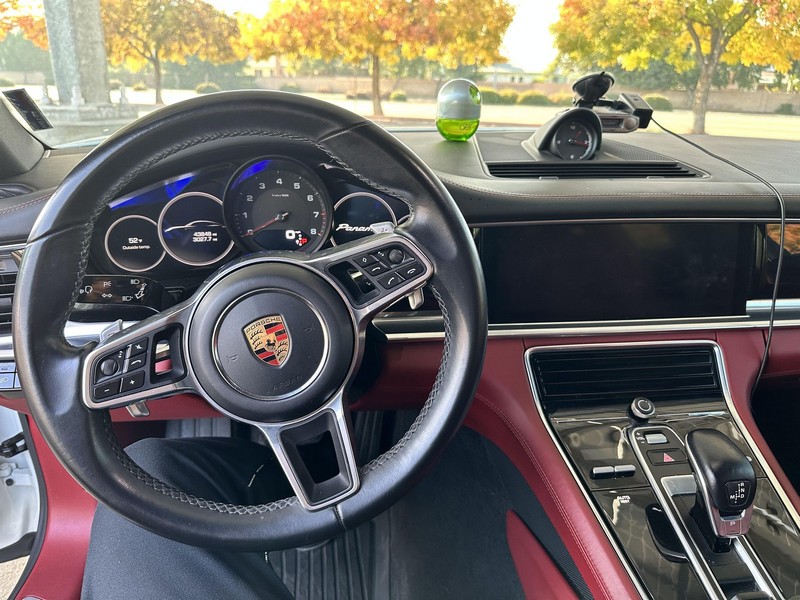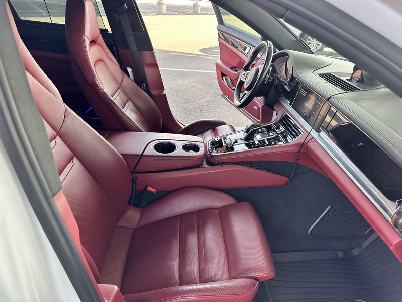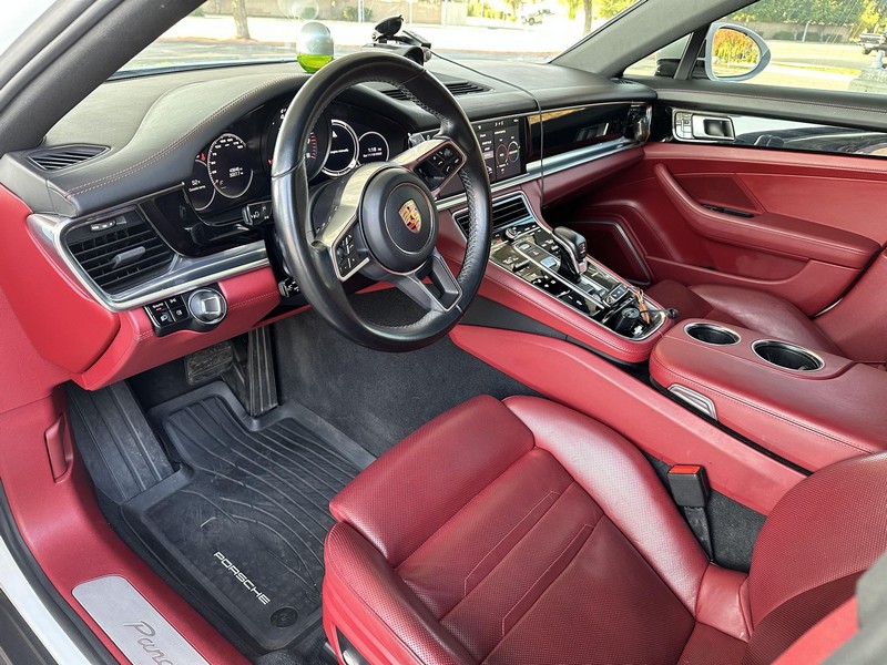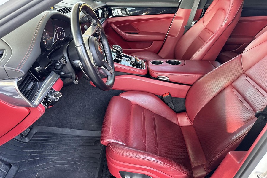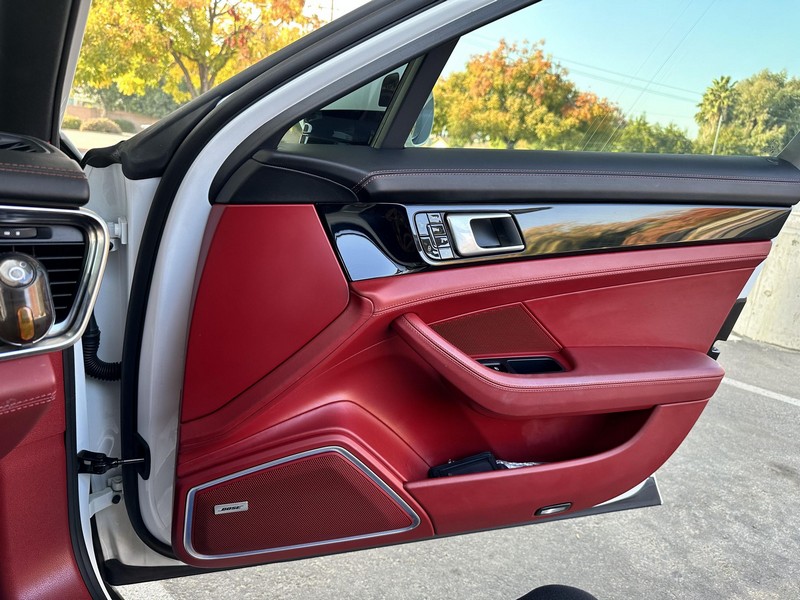 THIS… is a 2017 Porsche Panamera, finished in White with a Bordeaux Red interior. The attached Carfax vehicle history report shows no mileage discrepancies; it also shows that this Porsche has been registered primarily in Texas until 2021. According to the build sheet provided in the gallery, factory equipment includes Premium Package Plus, Adaptive Air Suspension, 21-inch SportDesign Wheels, a heated steering wheel, power steering, 4-zone climate control, Bose surround sound, and more as described below. Modifications are limited to tinted windows. Power comes from a 3.0-liter twin-turbocharged V6, rated at 330 horsepower and 331 lb-ft of torque. It spins the rear wheels via an 8-speed automatic transmission.
