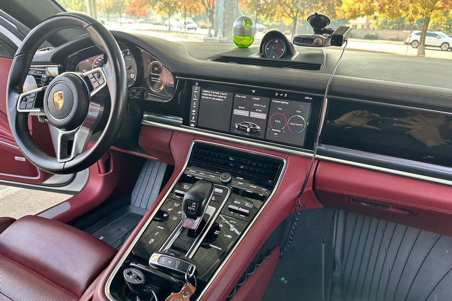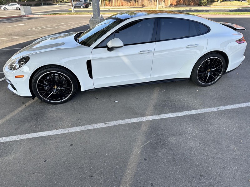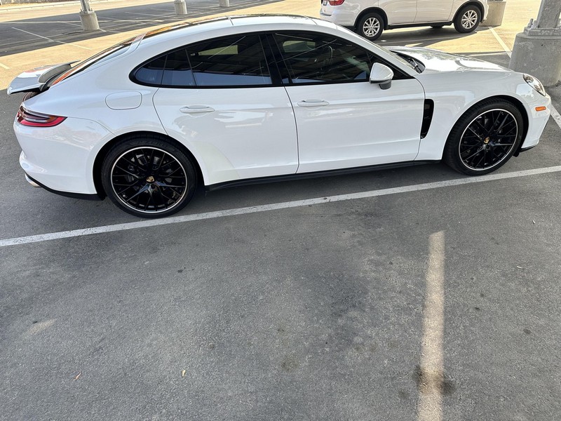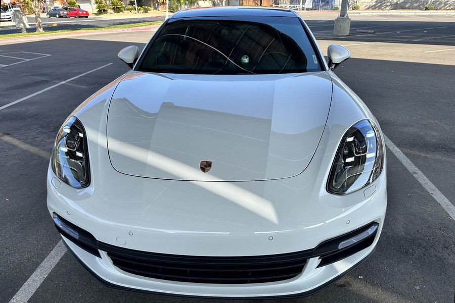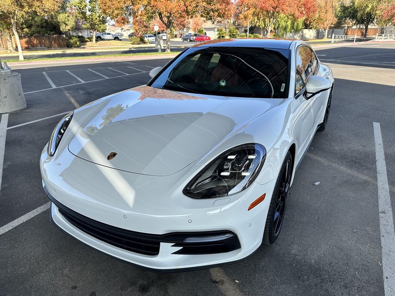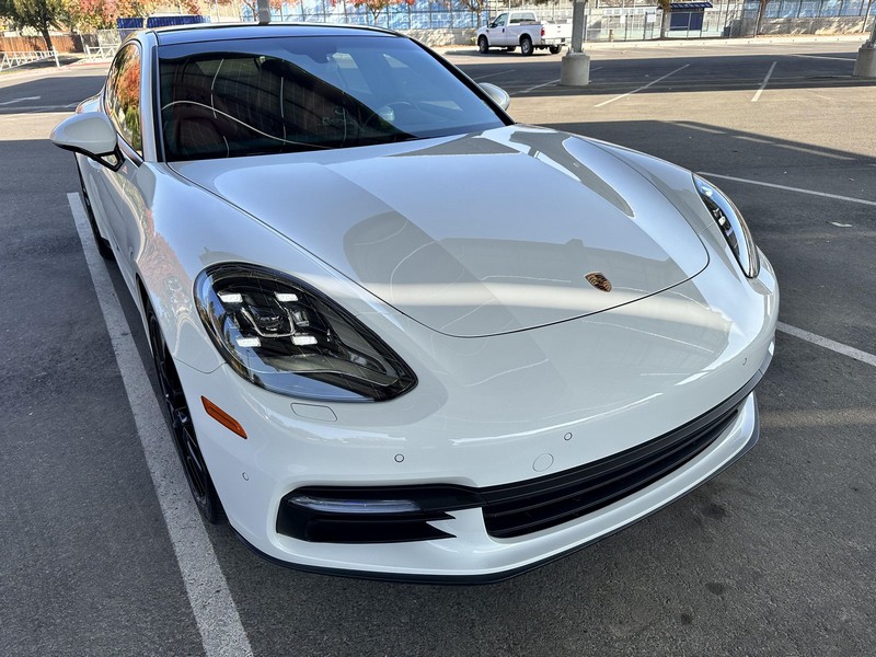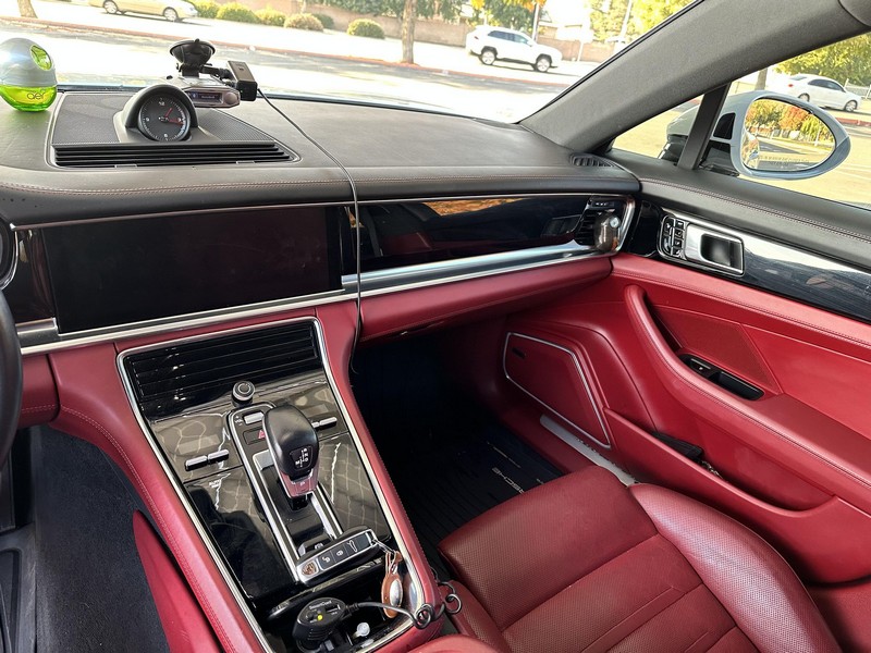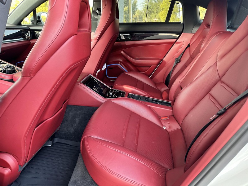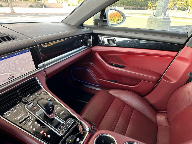 THIS… is a 2017 Porsche Panamera, finished in White with a Bordeaux Red interior. The attached Carfax vehicle history report shows no mileage discrepancies; it also shows that this Porsche has been registered primarily in Texas until 2021. According to the build sheet provided in the gallery, factory equipment includes Premium Package Plus, Adaptive Air Suspension, 21-inch SportDesign Wheels, a heated steering wheel, power steering, 4-zone climate control, Bose surround sound, and more as described below. Modifications are limited to tinted windows. Power comes from a 3.0-liter twin-turbocharged V6, rated at 330 horsepower and 331 lb-ft of torque. It spins the rear wheels via an 8-speed automatic transmission.