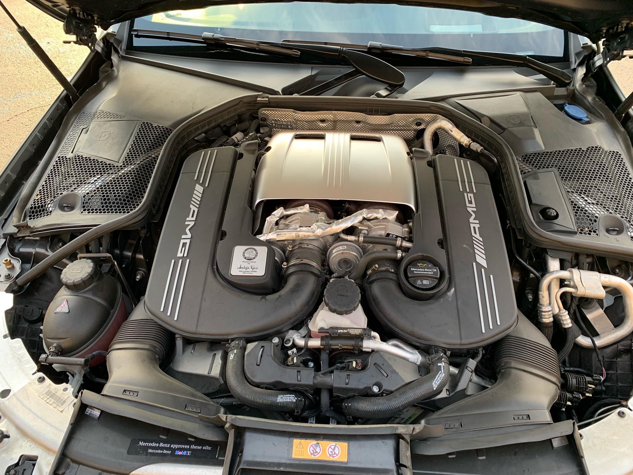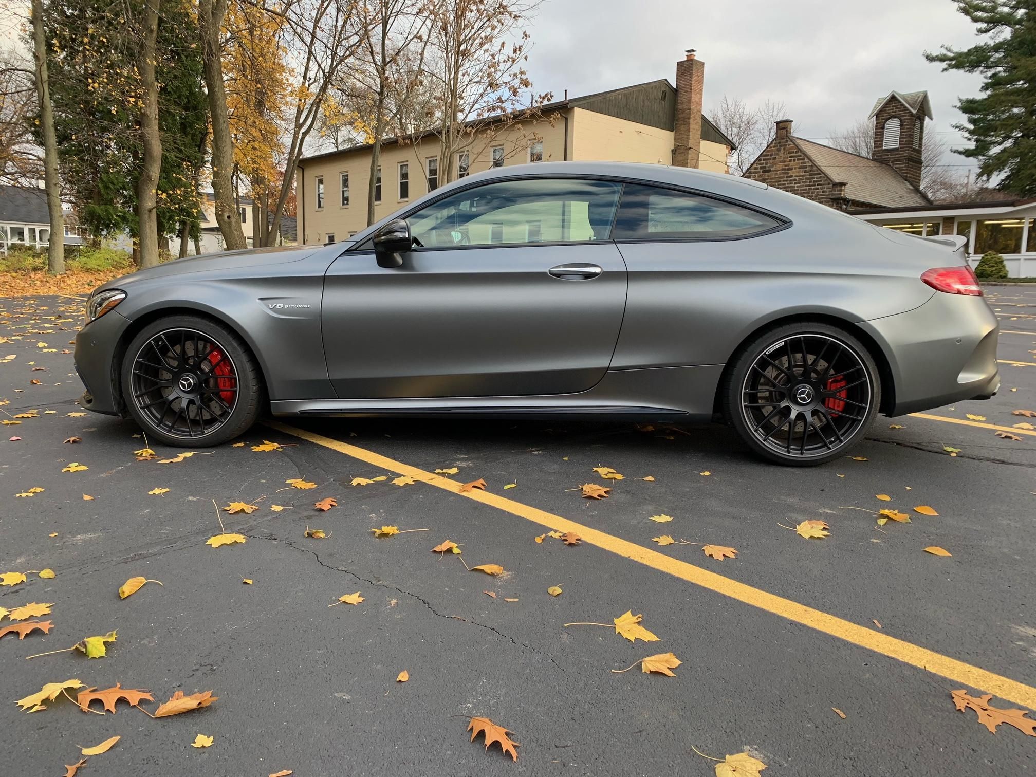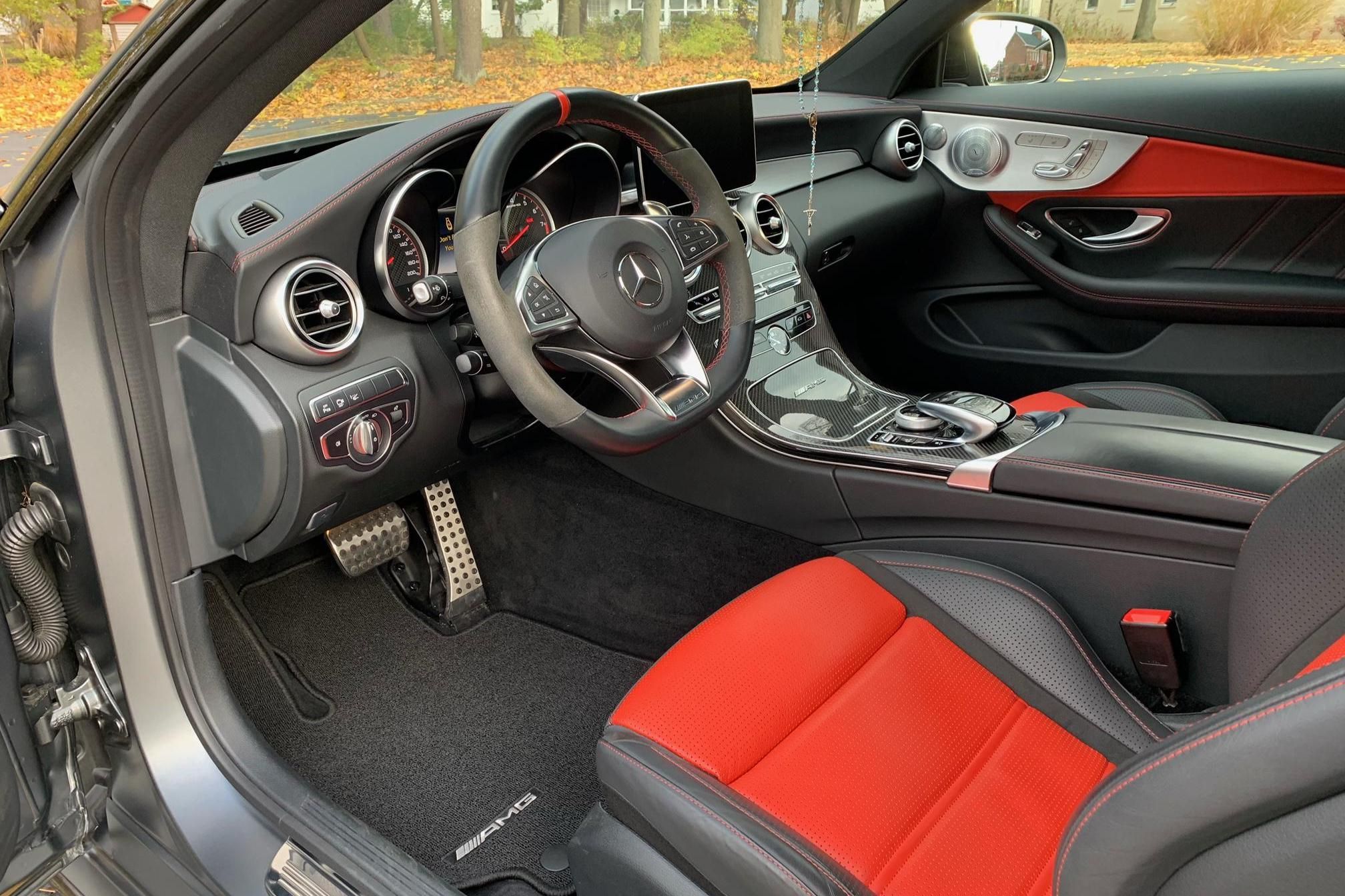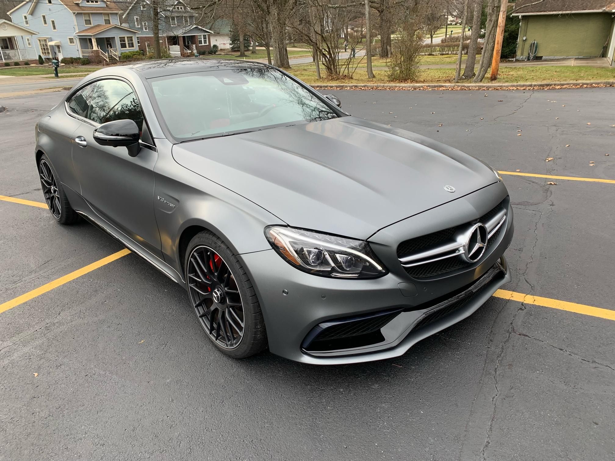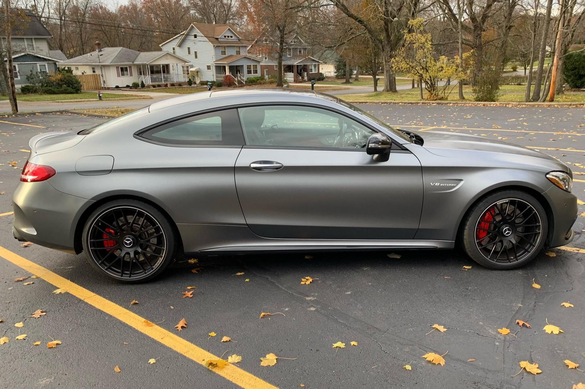 THIS… is a 2018 Mercedes-AMG C63 S Coupe finished in Designo Selenite Grey Magno with a Red Pepper/Black interior. No accidents or mileage discrepancies in this C63’s past. It also confirms that this is a one-owner car. It comes equipped with the Advanced Lighting Package (adaptive LED headlights, ambient lighting, AMG illuminated door sills), the Multimedia Package (COMAND infotainment with 8.4-inch display, touchpad and voice control, navigation system), the AMG Night Package (body and window trim in black, black chrome-plated exhaust tailpipes), the Advanced Parking Assist Package (Parktronic with Active Parking Assist, Surround View system), and more as detailed below. The seller reports no modifications. Mercedes-AMG introduced the “W205”-based C63 for the 2015 model year, shortly after it morphed into a sub-brand within Mercedes-Benz. Offered as a sedan and as a coupe, the C63 surfed the downsizing wave sweeping across the industry by trading displacement for forced induction, yet it was quicker and sharper to drive than its predecessor. Production ended in 2021, and Mercedes-AMG has confirmed that it won’t build another V8-powered C63. Power comes from a 4.0-liter twin-turbocharged V8, rated at 503 horsepower and 516 lb-ft of torque. Output is sent to the rear wheels via a 7-speed automatic transmission.