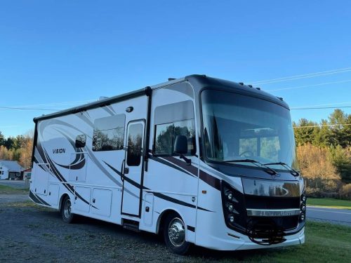 The residential feel of this coach not only promises comforts and conveniences for your entire journey, but the look and feel once you step inside tells you that luxury living is going to be your new way of travel. You are going to enjoy the spacious interior thanks to two nice size slides. Once parked, and the slides are opened up, sink back into the extendable sofa and enjoy a cozy fire in the fireplace as you watch your favorite program on the 39″ LED TV provided. All of the residential appliances will make it easy to cook gourmet meals just like home. And, at bedtime, a king bed is waiting to whisk you off to dreamland! The rear bath offers privacy from the main living area up front, and there is also a half bath easily accessible during the day. Outside, you will find tons of storage space with a lockable pass-through compartment that makes packing and storing your outdoor gear easy, and the 17′ electric awning with outside entertainment center provides a place to hang out both day and night protected from the elements while enjoying a bit of fresh air. You also have the option of adding a drop-down overhead bunk for added guests that wish to spend the night, plus so much more.