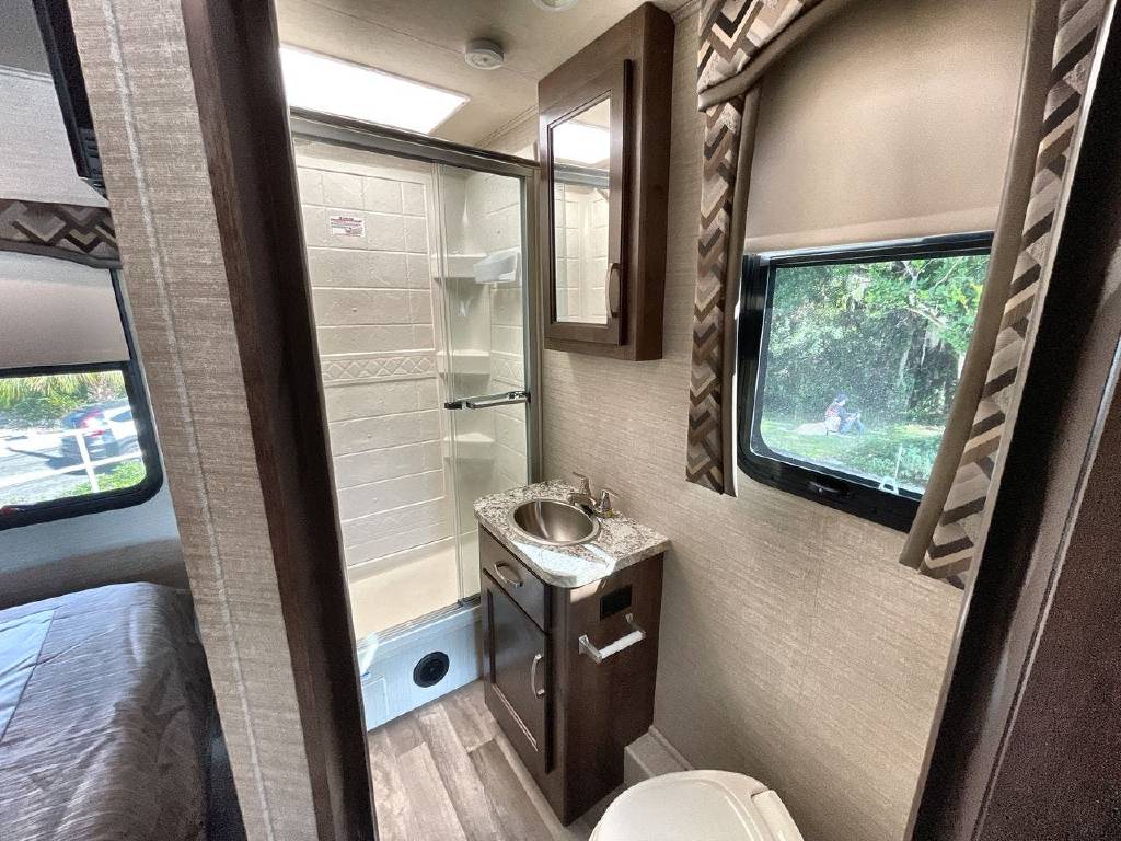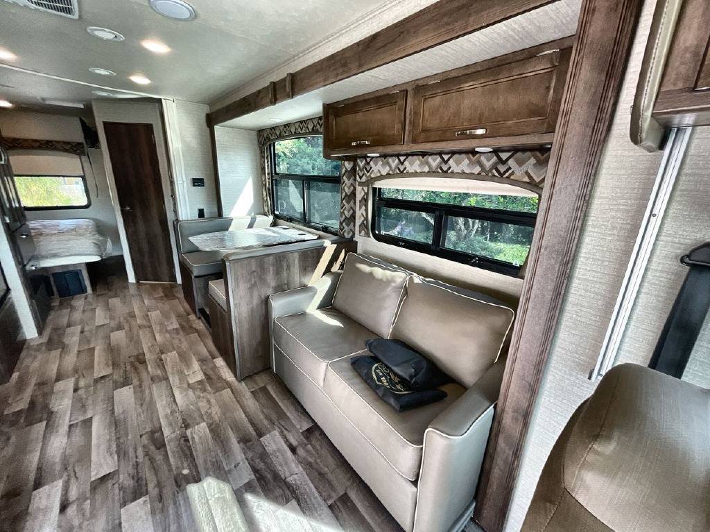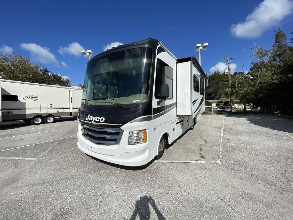 2019 Jayco Alante, 26X, Get ready for an adventure in a 2019 Jayco Alante 26X. Sleep peacefully in this Alante 26X which comfortably sleeps 8. 2 sofa bed(s) and 1 queen bed helps your family enjoy nighttime dream adventures too. And a master bedroom conveniently located in the Rear. There’s room for everyone and everything. Conveniently located in this Alante Class A are a Center kitchen with Bench Seats, Front living area and Rear bathroom. With all the comforts of home, this Alante 26X Class A intensifies your RV camping experience and features a stove with 3 oven burners, Mid-Size refrigerator, 2 TVs, and more. This Alante 26X, has a GVWR of 16000 lbs . And holds 1 Black Water Holding Tank(s), 1 Fresh Water Holding Tank(s), and 1 Gray Water Holding Tanks. This Alante has 1 door(s), 1 awning(s), 2 slideout(s).