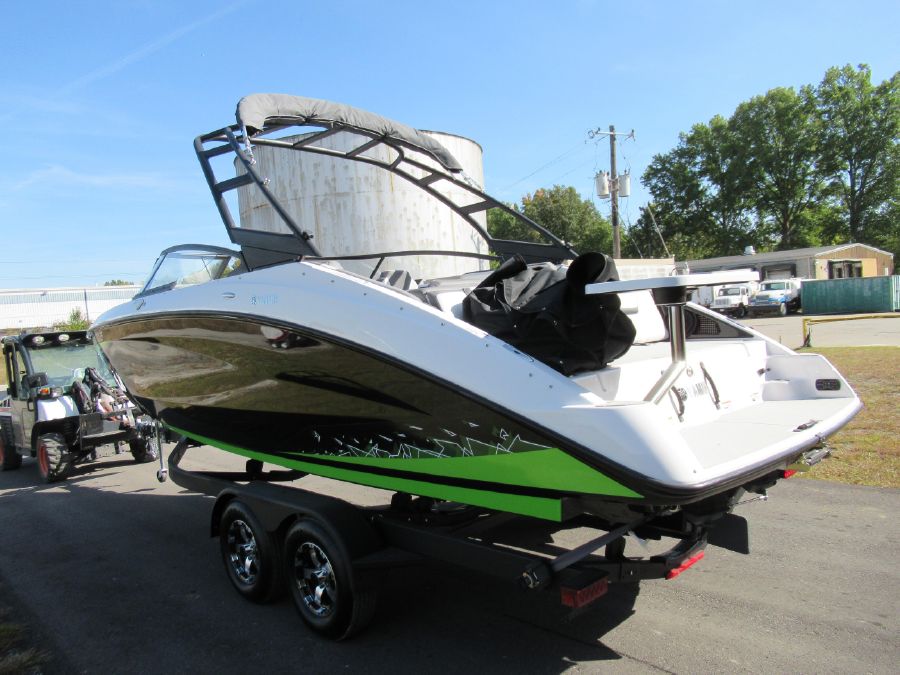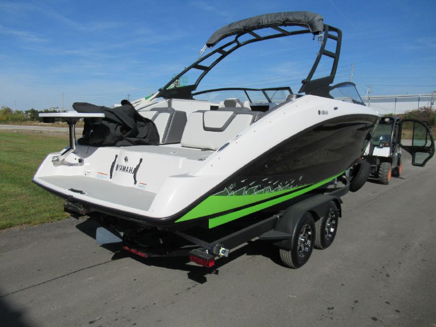 Beautiful 2021 Yamaha AR250 that we sold new! This barely used unit comes with: Custom Cover, Bimini on the tower, In-floor storage, portable cocktail table, snap-in matting, and much more!