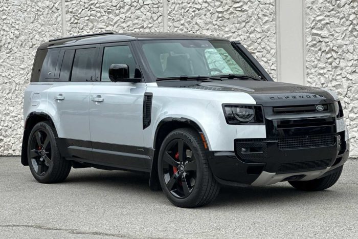 2022 Land Rover Defender 110 X…Hakuba SIlver Exterior…Vintage Tan Windsor Leather…22″ Gloss Black Wheels…Extended Black Exterior Package…Raised Air Intake…11.4″ Big Touchscreen…Cold Climate Package…Tow Hitch Receiver…Front Center Console Refrigerator Compartment… Gloss Black Signature Graphic…Cabin Air Ionization w/ 2.5 PM filter…3 Zone Climate Control…Air Quality Sensor.