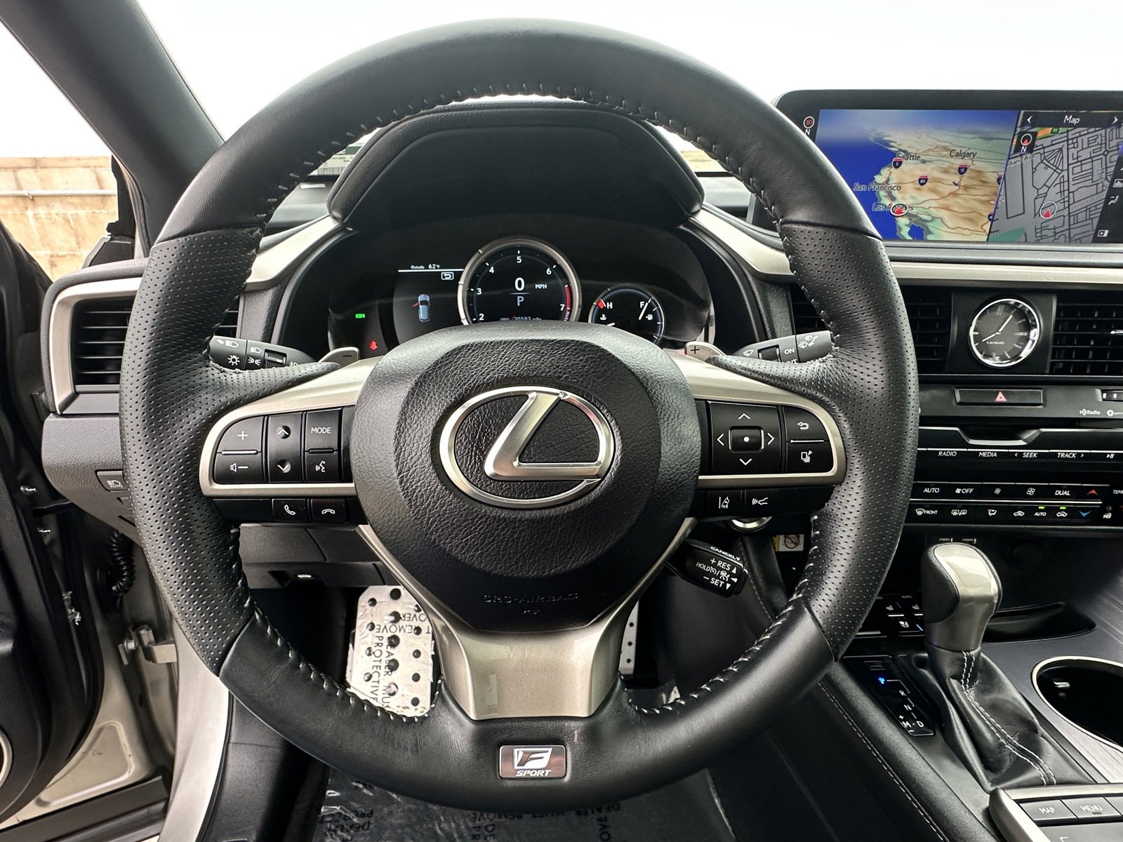 **F-SPORT**, **Navigation system: 15-speaker Mark Levinson Premium Sound System with 12.3-in Touch-Screen**, **Panorama Moonroof**, **Triple-Beam Auto-Leveling LED Headlamps**, **Lexus Safety System+ 2.0**, **Low Miles**, **CarFax One Owner**, **Clean CarFax**, **Pristine Condition**, **Non Smoker**, AWD, Black w/F SPORT NuLuxe Seat Trim. This 2022 Atomic Silver Lexus RX 350 F Sport Handling AWD is well equipped and includes these features and benefits: AWD, Black w/F SPORT NuLuxe Seat Trim, 20″ x 8″ Aluminum Wheels, 3.33 Axle Ratio, 4-Wheel Disc Brakes, 9 Speakers, ABS brakes, Adaptive suspension, Air Conditioning, Alloy wheels, AM/FM radio: SiriusXM, AM/FM/CD Radio, Anti-whiplash front head restraints, Apple CarPlay/Android Auto, Auto High-beam Headlights, Auto tilt-away steering wheel, Auto-dimming door mirrors, Auto-dimming Rear-View mirror, Automatic temperature control, Brake assist, Bumpers: body-color, CD player, Compass, Delay-off headlights, Driver door bin, Driver vanity mirror, Dual front impact airbags, Dual front side impact airbags, Electronic Stability Control, Emergency communication system, Exterior Parking Camera Rear, F SPORT NuLuxe Seat Trim, Four wheel independent suspension, Front anti-roll bar, Front Bucket Seats, Front Center Armrest, Front dual zone A/C, Front reading lights, Fully automatic headlights, Garage door transmitter: HomeLink, Heated & Ventilated F SPORT Front Bucket Seats, Heated door mirrors, Heated front seats, Heated steering wheel, Illuminated entry, Knee airbag, Leather Shift Knob, Low tire pressure warning, Memory seat, Occupant sensing airbag, Outside temperature display, Overhead airbag, Overhead console, Panic alarm, Passenger door bin, Passenger vanity mirror, Power door mirrors, Power driver seat, Power Liftgate, Power passenger seat, Power steering, Power windows, Radio data system, Rain sensing wipers, Rear anti-roll bar, Rear reading lights, Rear seat center armrest, Rear side impact airbag, Rear window defroster, Rear window wiper, Remote keyless entry, Security system, Speed control, Speed-sensing steering, Split folding rear seat, Spoiler, Sport steering wheel, Steering wheel memory, Steering wheel mounted audio controls, Tachometer, Telescoping steering wheel, Tilt steering wheel, Traction control, Trip computer, Turn signal indicator mirrors, Variably intermittent wipers, and Ventilated front seats.