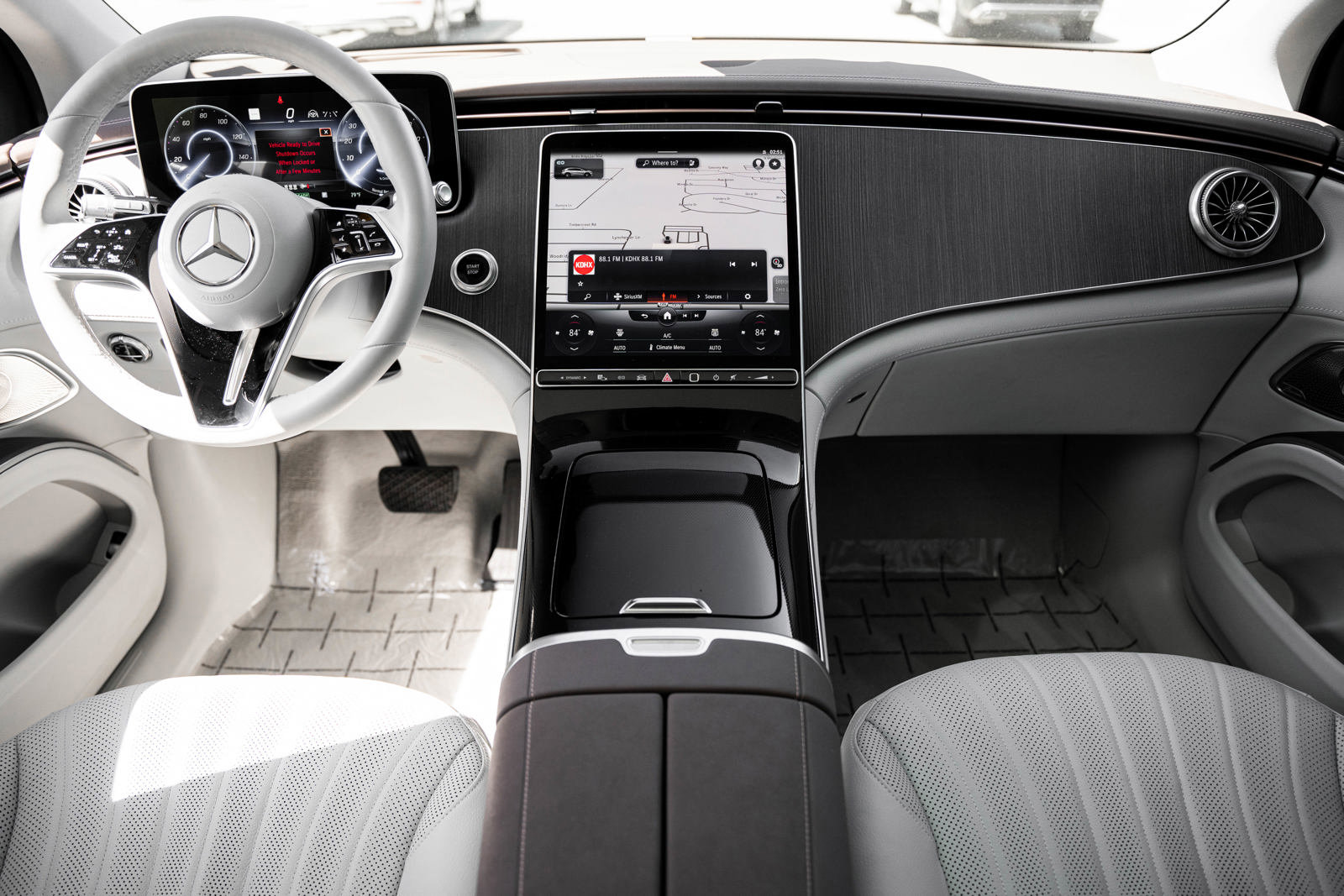 Black 2023 Mercedes-Benz EQS 450 4MATICᆴ 4MATICᆴ 1-Speed Automatic Electric Motor MSRP $115985, Aerodynamic Illuminated Running Boards, Aerodynamic Illuminated Running Boards, 15 Speakers, 4-Wheel Disc Brakes, 4-Zone Climate Control, ABS brakes, Adaptive suspension, Air Conditioning, AIR-BALANCE Package, Alloy wheels, Auto High-beam Headlights, Auto tilt-away steering wheel, Auto-dimming door mirrors, Auto-dimming Rear-View mirror, Auto-leveling suspension, Automatic temperature control, Bumpers: body-color, Delay-off headlights, Driver vanity mirror, Electronic Stability Control, Emergency communication system: eCall Emergency System, Exclusive Trim Package, Exterior Parking Camera Rear, Front Bucket Seats, Front Center Armrest, Front Door Mercedes Star-Pattern Logo Projectors, Front dual zone A/C, Garage door transmitter: HomeLink, Genuine wood door panel insert, Head restraints memory, Heated & Ventilated Power Front Seats, Heated door mirrors, Heated front seats, HVAC memory, Illuminated entry, Leather steering wheel, Leather Upholstery, Low tire pressure warning, MB Apps/Apple CarPlay/Android Auto, MBUX Front Interior Assist, Memory seat, Multicontour Front Seats w/Massage Feature, Navigation system: MBUX Augmented Reality for Navigation, Panic alarm, Power adjustable front head restraints, Power door mirrors, Power driver seat, Power Liftgate, Power moonroof: Panorama, Power passenger seat, Power windows, Premium audio system: MBUX, Premium Trim Package, Radio data system, Radio: Burmesterᆴ 3D Surround Sound System, Rain sensing wipers, Rapid Heating Front Seats, Rear window defroster, Rear window wiper, Remote keyless entry, Security system, Speed control, Speed-Sensitive Wipers, Split folding rear seat, Spoiler, Steering wheel memory, Steering wheel mounted audio controls, Tilt steering wheel, Traction control, Turn signal indicator mirrors, Variably intermittent wipers, Ventilated front seats, Wheels: 20″ x 8.5J 5-Spoke Aero w/Black Acc.